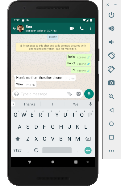 Launch the Virtual Device, the open the Play Store and sign in. Now use the Play Store to install WhatsApp on the Virtual Device.